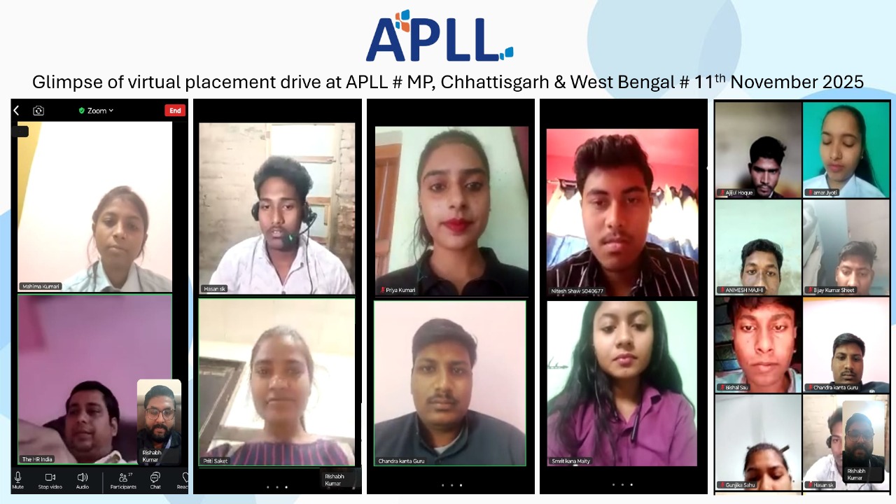 Glimpse of virtual placement drive at APLL # MP, Chhattisgarh & West Bengal # 11th November 2025
