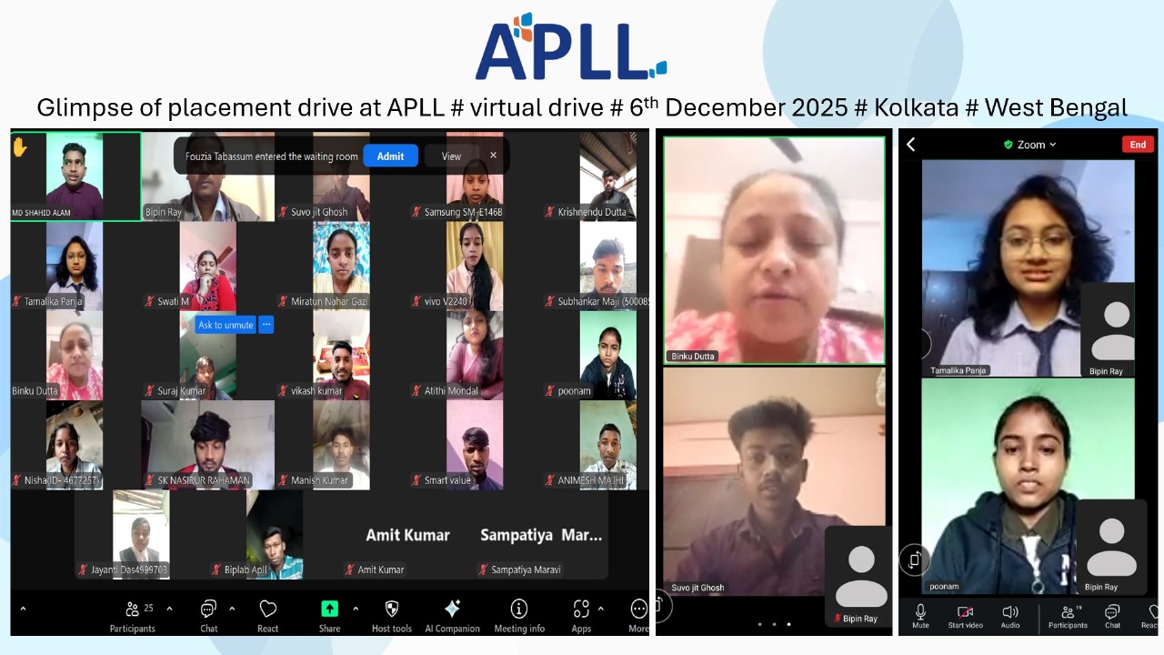 Glimpse of placement drive at APLL # virtual drive # 6th December 2025 # Kolkata # West Bengal