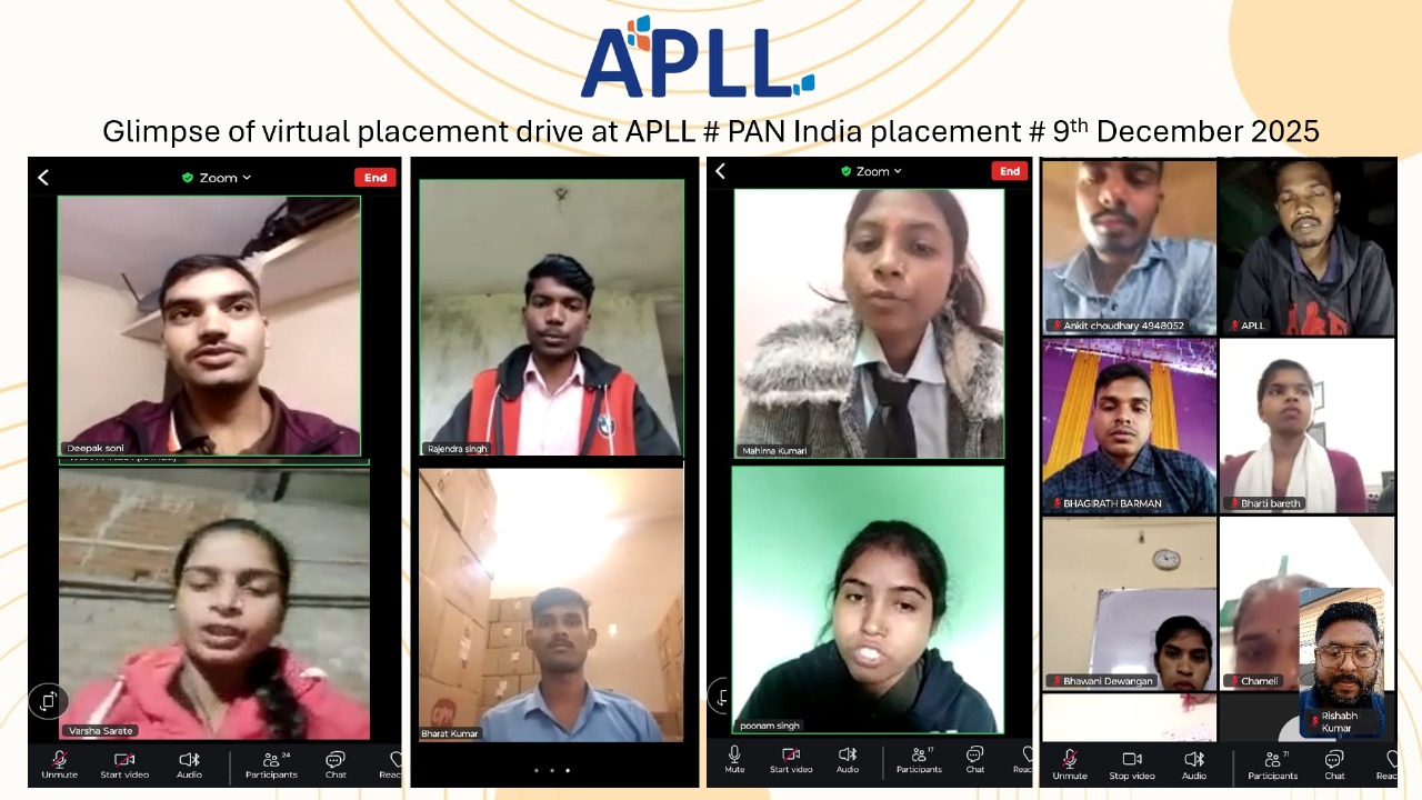 Glimpse of virtual placement drive at APLL # PAN India placement # 9th December 2025