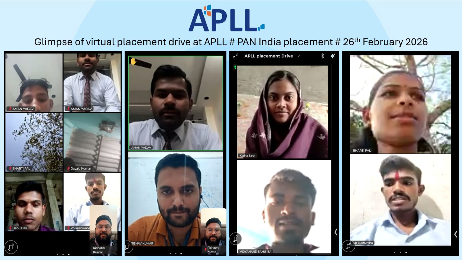 Glimpse of virtual placement drive at APLL # PAN India placement # 24th January 2026